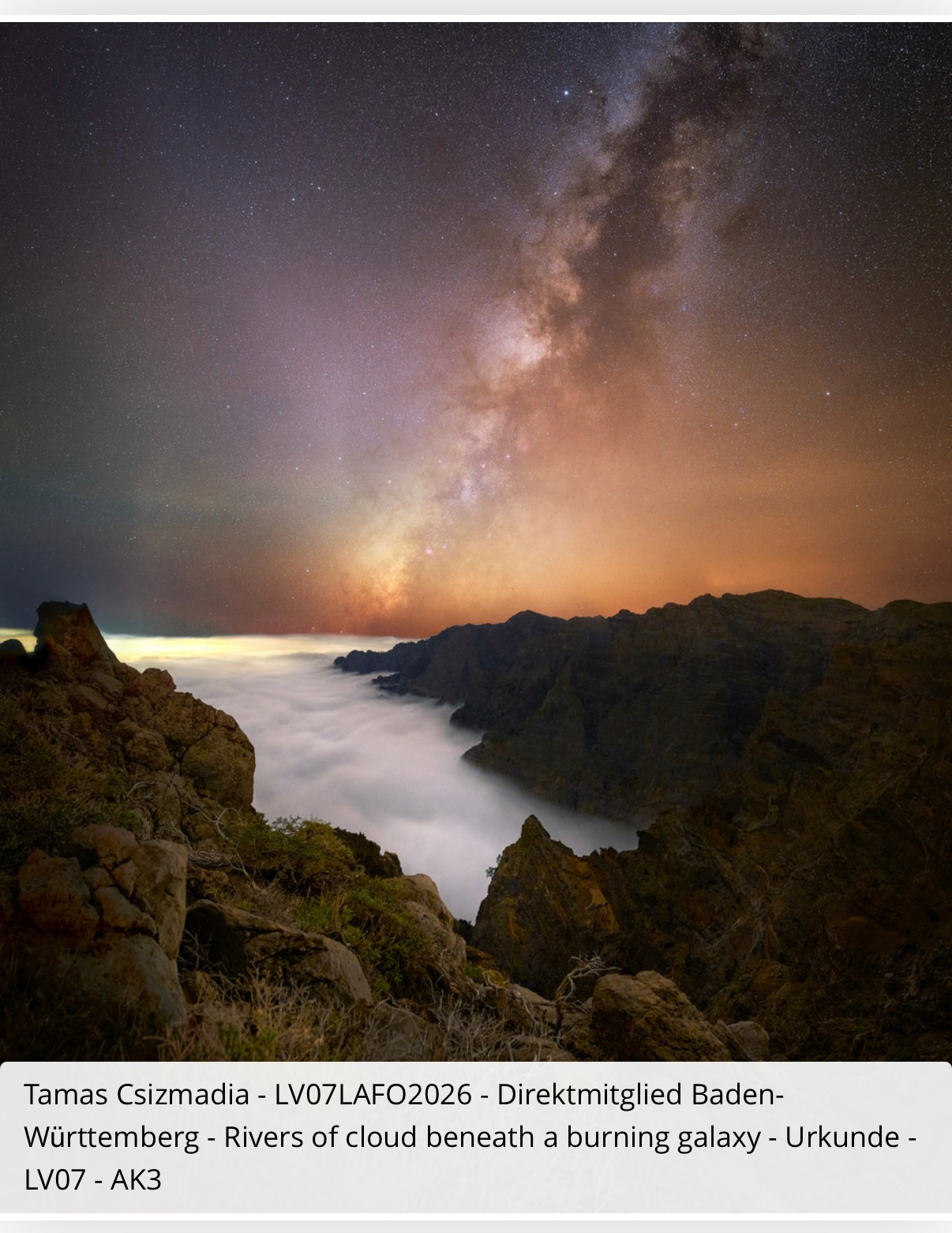 A Német Fotós Egyesület Baden-Württemberg tartományban tartott év fotósa pályázaton Csizmadia Tamás 3 elfogadott képeiből 1 medál és 1 oklevél végeredményben 6 ponttal a harmadik helyezést érte el.